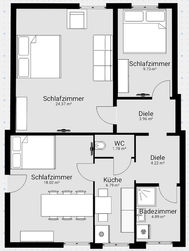 Sie verfügt über 3 Schlafzimmer mit Doppelbetten (2x 180cm Breite, 1x 160cm Breite). Ein Schlafzimmer bietet zusätzlich ein Schlafsofa mit Lattenrost (140cm Breite). Ein Schlafzimmer ist gleichzeitig das Eingangszimmer.